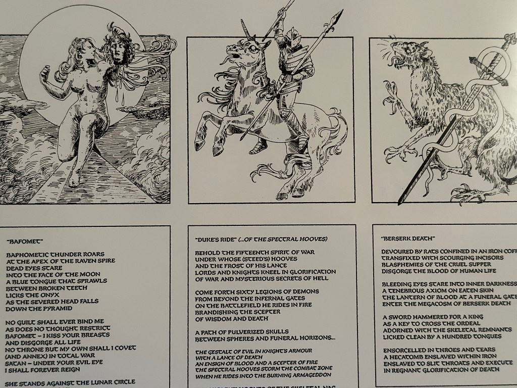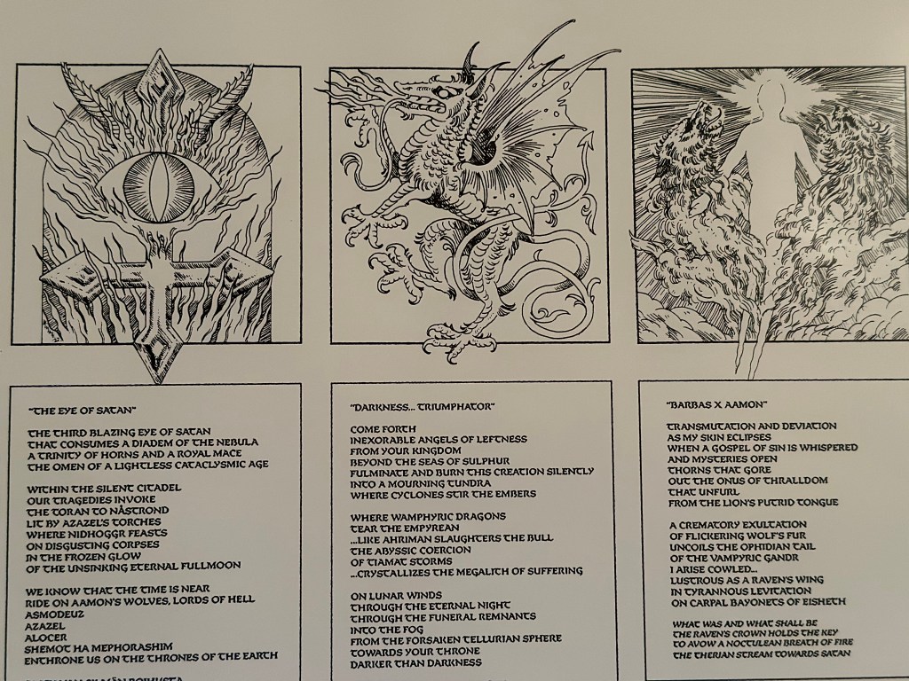 Side B opens with ‘The Eye of Satan,’ which begins on a slower pace and grinding tremolo chords which evolve into a plethora of melodic riffcraft, showcasing an evolutionary trait not yet seen in the Satanic Warmaster canon. The song constantly stays in rhythmic motion and morph, with accents and melodic overtones constantly emerging and resolving.